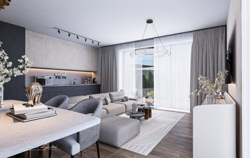 Vstupní i interiérové dveře do bytů budou v nadstandardní výšce 2 100 mm. Podlahy budou provedeny z kvalitního vinylu.Součástí domu jako celku bude fotovoltaická elektrárna umístěná na střeše, doplněná o bateriové úložiště. Toto řešení významně přispěje ke snížení nákladů na vytápění, ohřev vody a celkovou spotřebu elektrické energie.